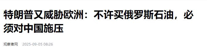 特朗普的第二道指令,则直接指向了中国。他要求欧洲必须对中国施加经济压力,理由是中国在“援助”俄罗斯。